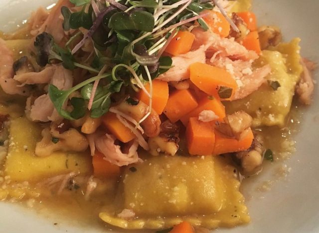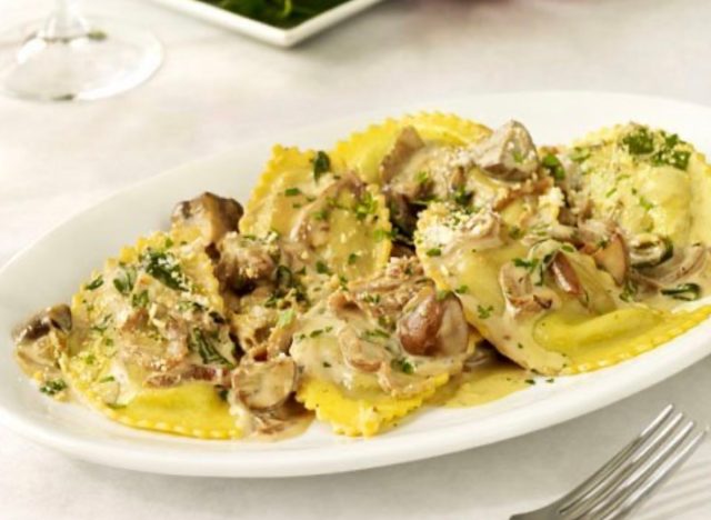 Maggiano’s Little Italy has a Four-Cheese Ravioli with a little twist from the OG dish. Instead of marinara, it is served with a pistachio pesto and parmesan cream sauce. Or if you like funghi, get the mushroom ravioli, made with balsamic mushrooms and garlic breadcrumbs and tossed in a marsala cream sauce. One TripAdvisor diner calls the mushroom ravioli “fantastic,” adding that it offers “great flavor and the sauce was superb.”