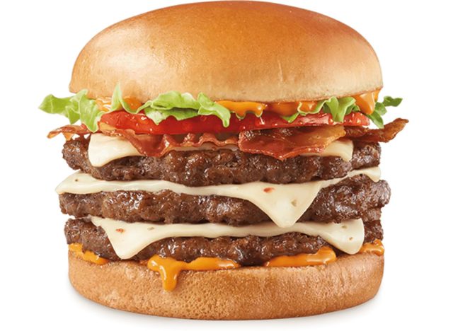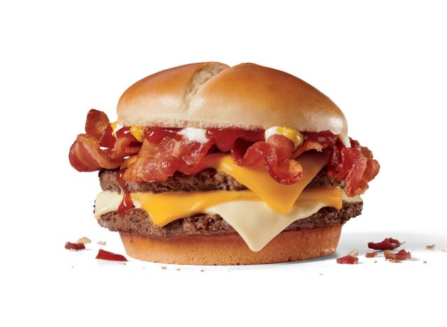 With a name like the Big Bacon Classic Double, you might guess that this Wendy’s burger will be loaded with calories, fat, and sodium—and you’d be correct. With 1,460 milligrams of sodium, 25 grams of saturated fat, and almost 1,000 calories, this burger is one you may want to skip. It also has 3 grams of trans fat, a type of fat linked to heart disease, which is why the World Health Organization says you should limit your consumption to no more than 2.2 grams per day.