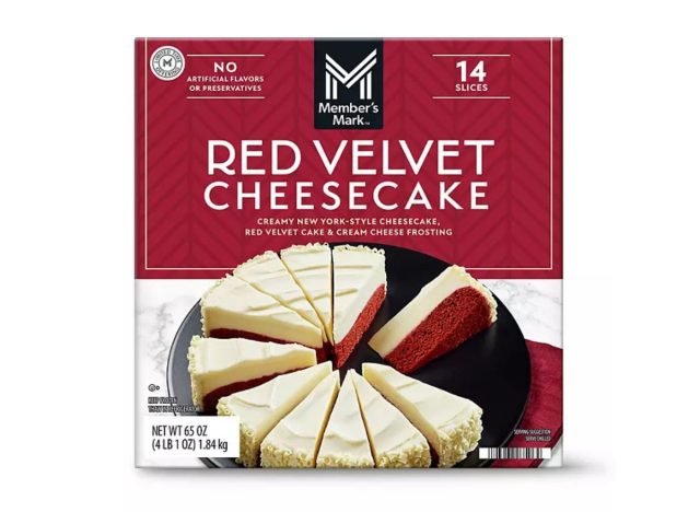 If you’re looking for a cake that isn’t the standard chocolate or vanilla, consider picking up the Member’s Mark Red Velvet Cheesecake. This dessert comes frozen and includes 14 pre-cut slices of red velvet cake with chocolate chips, layered with New York-style cheesecake, and topped with cream cheese frosting. There’s also a border of white chocolate curls for some additional texture and sweetness. Each cheesecake costs $18.86.