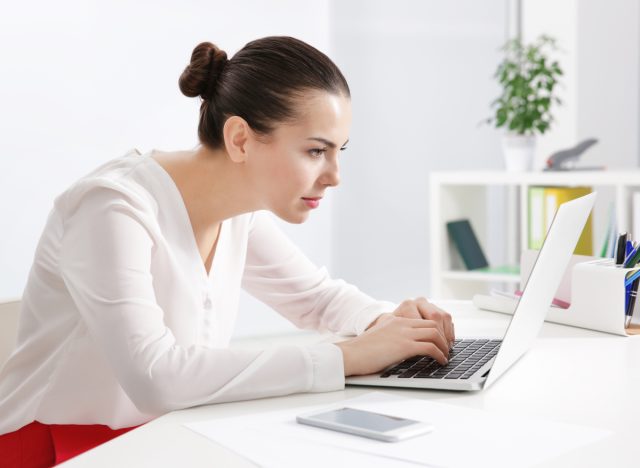 Being sedentary can be detrimental to your posture. “Sitting hunched over a desk all day can lead to poor posture, back pain, and muscle imbalances,” says Brewster. However, engaging in core exercises to tighten, tone, and strengthen your midsection can help improve your posture and ward off the effects of sitting at a desk.