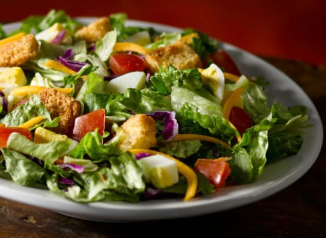 Texas Roadhouse has a surprisingly popular House Salad, made with fresh greens, cheddar cheese, tomato, eggs, and croutons. “I have an unhealthy love for their house salad and ranch!” one said. “Yes, I think they have the best side salad of any chain,” another agreed. A third said if they lived closer to one they’d probably get a house salad with ranch and a sweet potato daily.