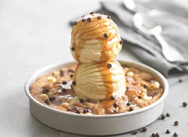 The famous Pizookies at BJ’s Restaurant & Brewhouse are what I would call “sundae-adjacent”: These huge desserts never disappoint, like the Salted Caramel Pizookie, for example. “It all starts with a warm caramel cookie with sweet almond toffee that’s baked in a personal pizza pan,” the restaurant says. “Crunchy pretzel bites add to the salty notes, while white and dark chocolate chips round out the sweetness. This treat is topped with two scoops of Rich Vanilla Bean ice cream and a drizzle of caramel sauce for a rich dessert that’s nothing short of delicious.”