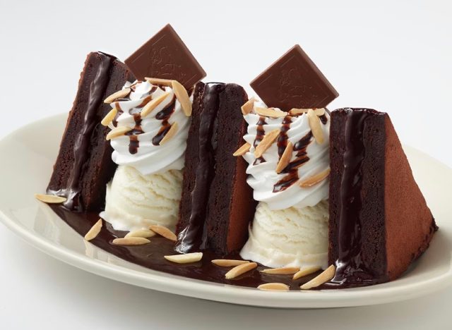The Godiva® Chocolate Brownie Sundae at The Cheesecake Factory is huge: Each sundae is made with a Godiva® chocolate brownie, vanilla ice cream, hot fudge, whipped cream, and toasted almonds. “Woo, little did I know how BIG the sundae was going to be,” one diner shared. “Well of course my boyfriend devoured his cakes, while I slowly worked half way through my extremely rich, chocolaty brownies with vanilla ice cream and piles of whipped cream drizzled in chocolate syrup. Ugh, sooo delicious but I could only handle half, my boyfriend had to finish the rest.”