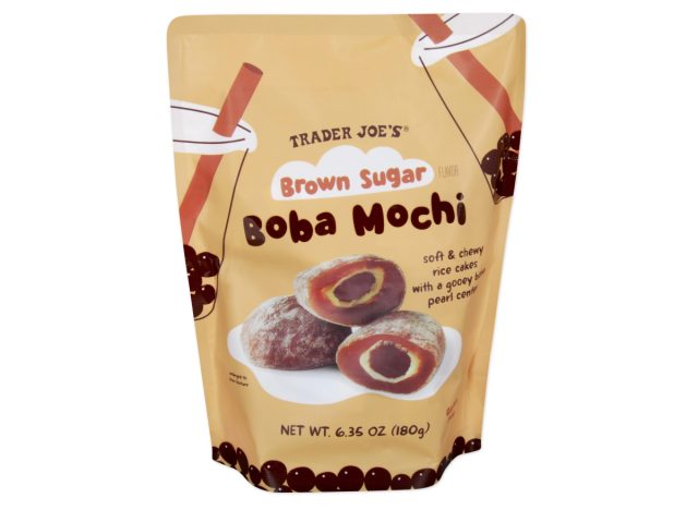 Trader Joe’s has reinvented its brown sugar boba by transforming it into a snack. Described by the grocer as a “deconstructed bubble beverage,” each soft and chewy rice cake has a gooey, brown sugar-flavored boba pearl center. These are individually wrapped and priced at $2.99 per bag.