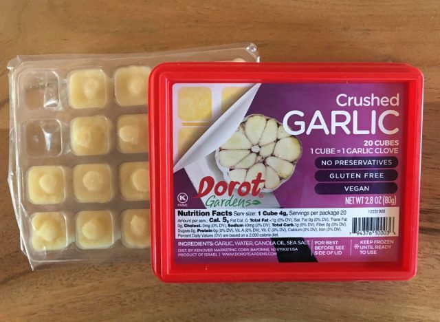 Used in recipes throughout numerous cuisines, garlic is a kitchen staple. Many people have cloves of garlic in the kitchen that can be minced or sliced and added to food, but Trader Joe’s sells garlic cubes—a frozen cube that melts in the pan and infuses food with a garlicky flavor. The cubes are a timesaver, because shoppers no longer have to mince or chop individual cloves of garlic themselves.