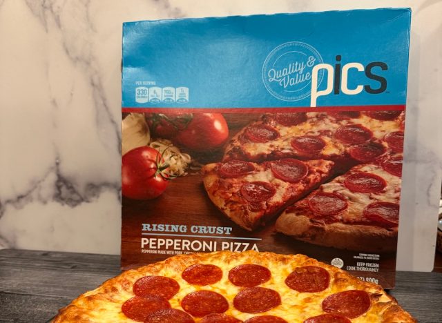 When it comes to PICS Rising Crust Pepperoni Pizza, this store-brand frozen pizza must be baked in the oven (the instructions specifically say not to microwave it). The rising crust is fluffy and substantial, which makes the pizza feel much closer to a real pizzeria-style slice. The pepperoni grease soaked into the crust a bit, giving it extra flavor, and the cheese melted evenly. For a grocery store brand, this pizza was a pleasant surprise and easily outperformed some big brand competitors.