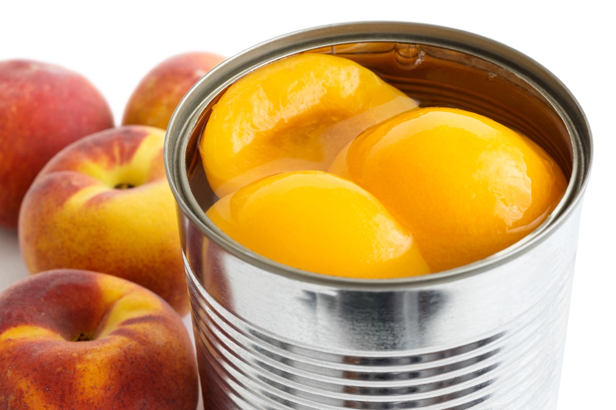 “It has 1/2 the calories, twice the fiber, and no added sugar, choosing peaches, or any fruit, canned in heavy syrup gives you more added sugar than peach.” McIndoo adds, “Consider fresh or frozen fruit or canned fruit in 100% fruit juice as an alternative.”