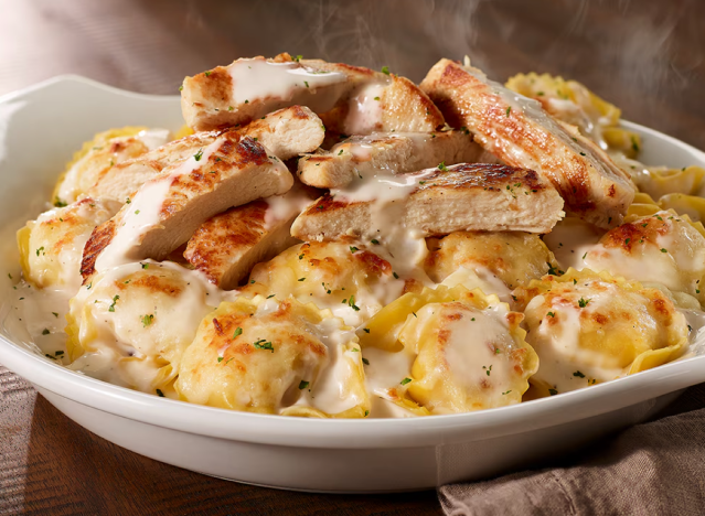 Olive Garden has a Chicken Tortellini Alfredo that diners truly love. That said, it’s important to be aware of the nutrition facts, especially if it’s a go-to for you. The Chicken Tortellini Alfredo has around 1,980 calories, 131g of fat, 76g of saturated fat, and 3,720mg of sodium, and is easily one of the unhealthiest options with that fat count well into the hundreds.