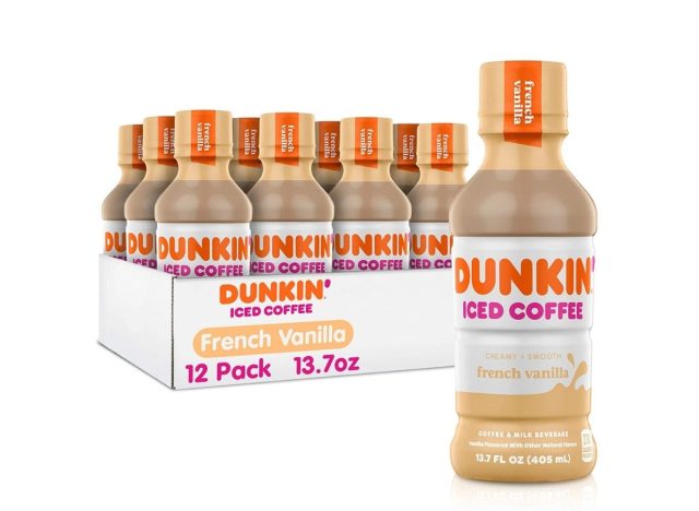 Dunkin’s Ice Coffee French Vanilla doesn’t fare much better than the Starbucks Frappuccino with 40 grams of total sugar. Watch out for the fat too. The five grams of saturated fat equal a quarter of a day’s limit.