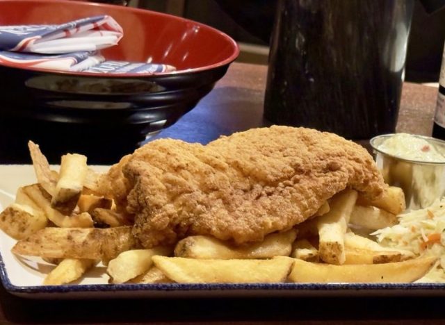 The Craft Beer Battered Fish & Chips at McCormick & Schmick’s is a fan-favorite item made with Beer Battered Cod, House Made Tartar, Cole Slaw, and Seasoned Fries. “The Fish and Chips plate consisted of three plump pieces of Alaskan Cod on top of a bed of thin fries. There is no better choice for fish and chips than Alaskan cod. Each piece was covered in a perfect, crisp coating,” one fan said.