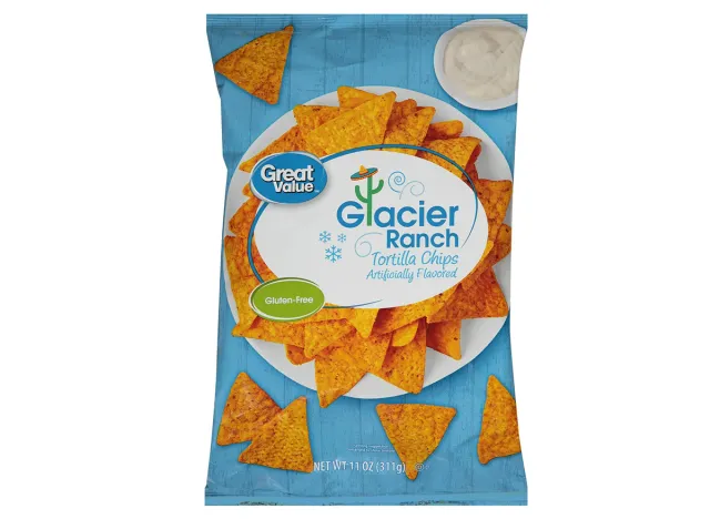 Great Value Glacier Ranch Tortilla Chips ($1.74 to $5.49) are an excellent Doritos dupe, fans say. “The ‘Glacier Ranch’ chips (Doritos Cool Ranch mock) are actually really good,” one customer said. “Texture of the chip is a tad different, but the flavor is pretty good.”