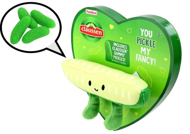 Is your Valentine a more salty-than-sweet person? This adorable Claussen Fruit Flavor Gummy Candy Pickle Valentine’s Heart Box ($21.99) comes with pickle-shaped gummies and a cute plush toy.