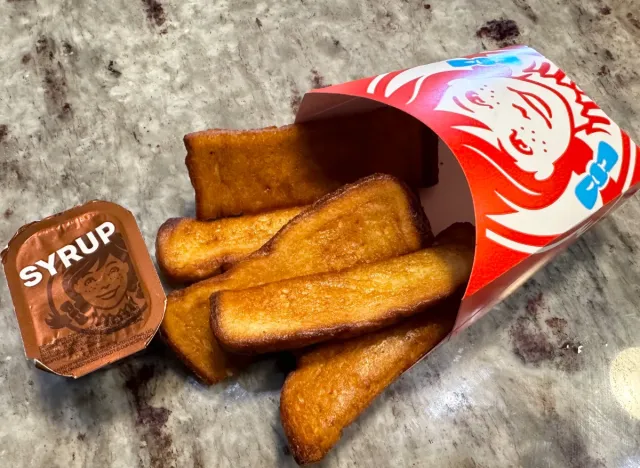 In the summer of 2022, Wendy’s gave its customers some sweet relief by adding Homestyle French Toast Sticks to its breakfast menu, which was otherwise dominated by savory sandwiches. If you’re like me, brought up in the pits of public school, these may bring you back to the days of 11 a.m. lunches and paper milk cartons. The stick form is nostalgic and perfect for on-the-go breakfasts and syrup dipping. I bought a four-pack for $2.99. Six-packs are available for those days when you need more of a pick-me-up.