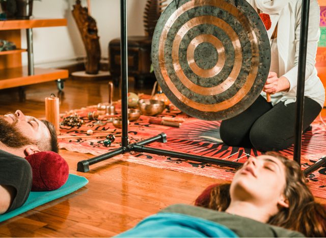 This wonderful therapy creates an extraordinary type of meditation designed to relax and “center” your mind as you simply listen, relax, and heal. If you’ve never experienced this type of healing journey before, then gear up for a truly life-changing experience. We spoke with Shanila Sattar, founder of AlwaysPlay Studios—where she trains breath work facilitators, sound healers, and provides mentorship in the healing arts—about exactly what to expect at a sound bath. Read on to learn more, and next, check out The 6 Best Exercises for Strong and Toned Arms in 2022, Trainer Says.