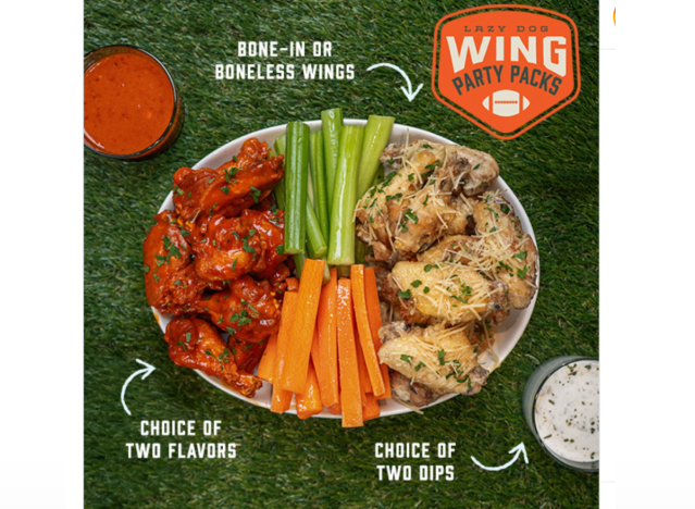 Lazy Dog Restaurant, which serves handcrafted American food and drink and is available in 50+ locations nationwide for dine-in, takeout, and delivery, is offering a Wings Party Pack, a game-day bundle designed for sharing that includes a variety of wing flavors, sauces, and veggies. Packs include your choice of Bone-in (32 wings) or Boneless (3 lbs.), with guest-favorite flavors like Buffalo, Lemon Pepper, and Garlic Parmesan. Each pack also comes with a side of veggies and handcrafted dipping sauces such as Ranch, Blue Cheese, and Nashville Hot. Use code “MARCH” for $5 off your online order of a Wings Party Pack through April 6.