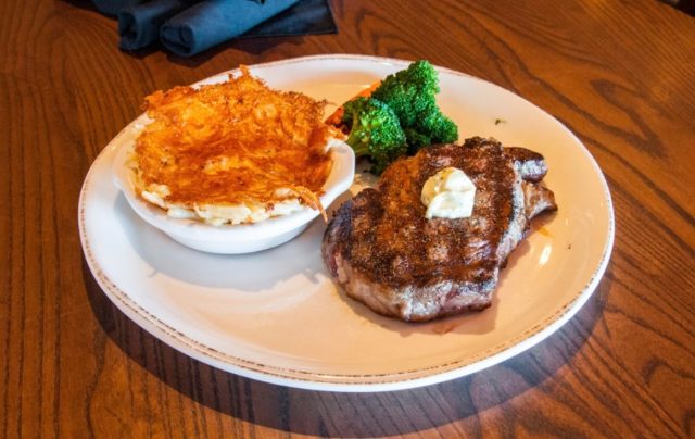Gilbert’s serves up delicious steaks cooked on a wood-fired grill. “Named for legendary Kansas City restaurateur Joe Gilbert, our top-rated steak restaurant stands as a hometown tribute to the hospitality icon himself,” the chain says. “We serve Midwestern-raised, USDA Prime Black Angus beef cooked over an open wood-fire grill, presented with the same inviting service and warmth for which Mr. Gilbert was known.”