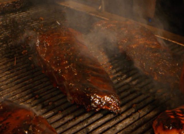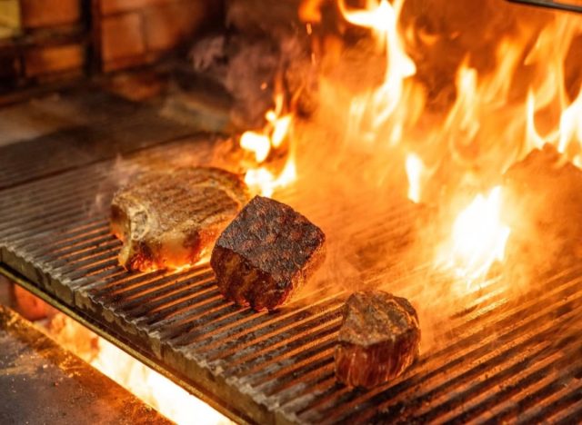 Fogo De Chão proudly cooks its steak on a wood-fired grill. “Our Gaucho chefs honor a century of tradition, skillfully butchering, simply seasoning, and fire-roasting each cut over an open flame for an unforgettable experience,” the chain says.