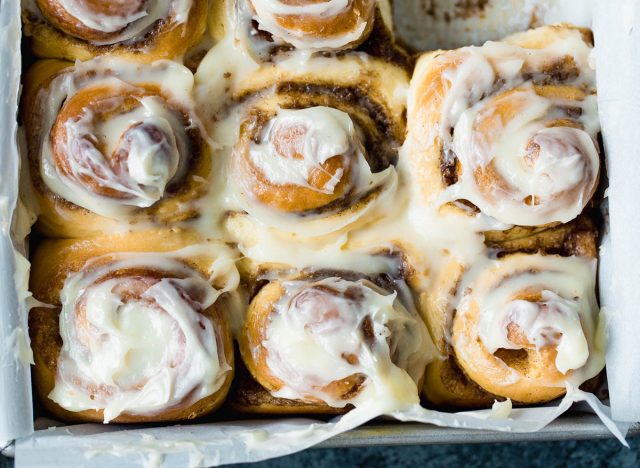“Since we tend to store fat in our midsection secondary to eating processed white foods and excessive amounts of sugar, cinnamon rolls might smell delicious but they are not helping us stay slim,” says Amy Shapiro MS, RD.