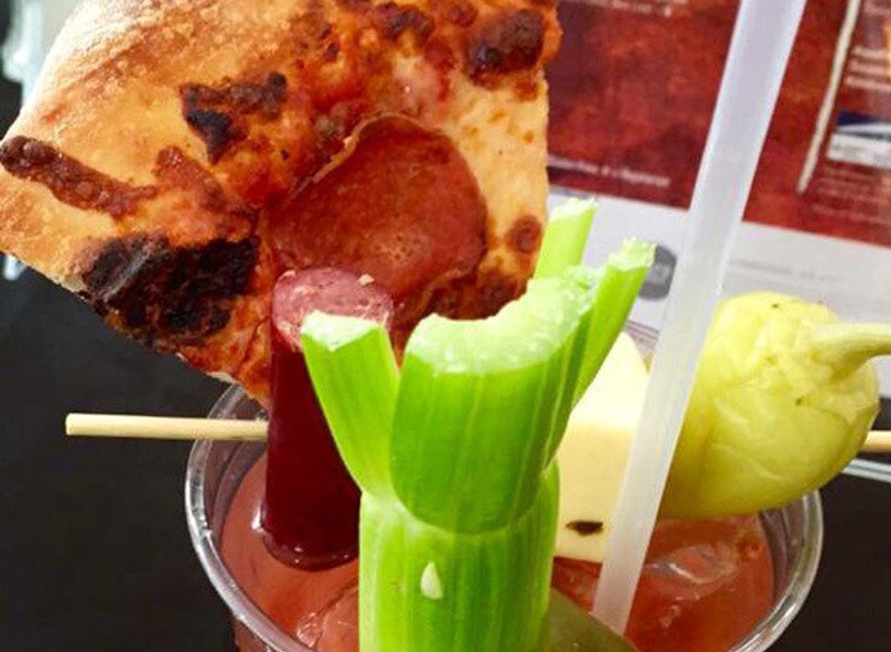 If you've ever wished your Bloody Mary came with a complimentary slice of pizza, some cheese cubes, and a beef stick, we've got some great news: Hrbek's Pub at the Minnesota Twins' home stadium is serving up just that! They also throw in an olive, pepperoncini, and a celery stick for good measure. The beverage, which has been dubbed the College Daze Bloody Mary, will cost you $19 and an estimated 759 calories. That's the equivalent of 19 Pizza Hut Traditional Hot Wings! While we don't advise indulging in this concoction solo, if you really want to give it a try, split it with three or four friends so it won't be as rough on your waistline. And if you're feeling the aftermath of the booze the next day, be sure to check out these The 25 Best Foods for a Hangover Cure — Ranked!!