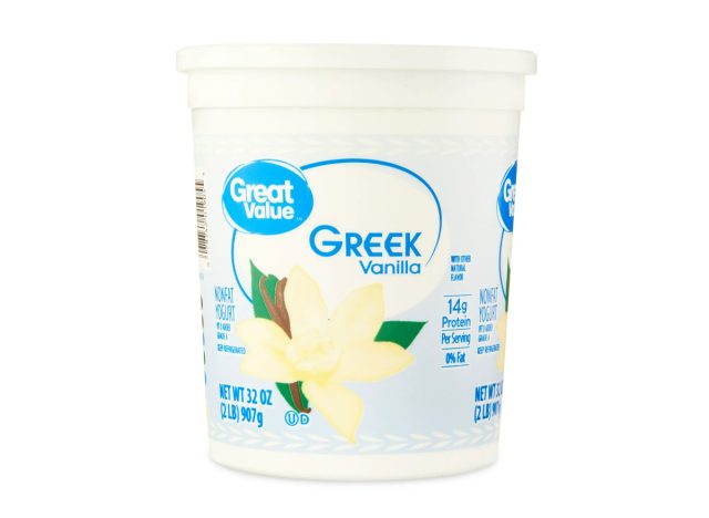 Amongst the worst Greek yogurts on our list, you’ll find sugar content to be much higher compared to better-for-you options. This yogurt option, Cabot Triple Cream Vanilla Bean Greek Yogurt, holds true to that characterization with the highest sugar content on this list. Not to mention, it also contains 13 grams of fat, 8 of which are saturated. Eating too much of this type of fat can raise cholesterol levels and increase your risk for heart disease and stroke.